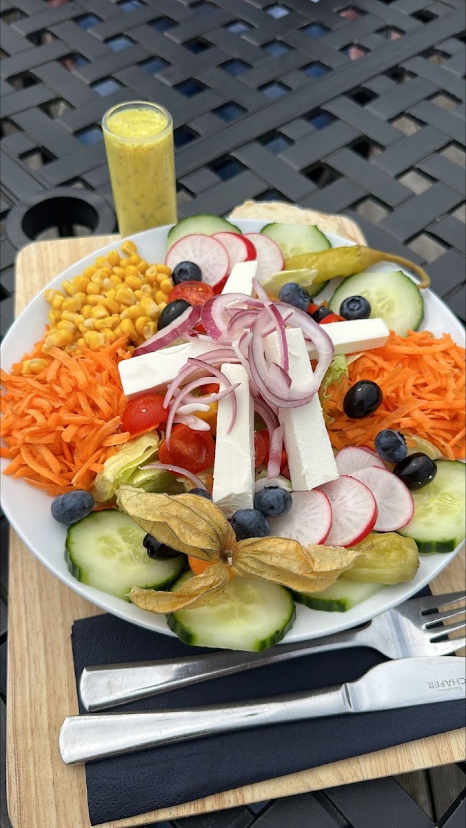 The menu might not be extensive, but it holds a delightful selection that features both savory and sweet options. Guests can indulge in an array of cakes, with the blueberry yogurt cake being a standout favorite. As customer Patrick P mentioned, “Eine Mischung aus frisch und fruchtig,” captures the essence of this delicious creation, perfectly enjoyed under the sun. Whether you're popping in for a casual coffee break or a leisurely lunch, rest assured that the offerings, coupled with wonderful service, make every visit special.